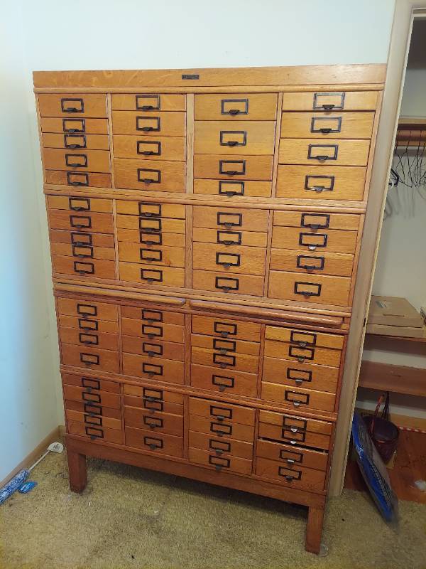 Vintage Oak 68 Drawer Stacking File Cabinet By P A Wetzel Co North Wichita Estate Auction Oak 68 Drawer Cabinet Watches Knives Tools Furniture Household And Much More Equip Bid